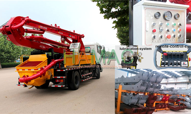 armas con el sistema de control de proporción de detección de carga garantizan el brazo de funcionamiento libre y un excelente rendimiento operativo. Múltiples válvulas de Electro-hidráulicas y manuales garantizan un control remoto inalámbrico y el control manual en caso de emergencia. Línea de aceite de pata de apoyo y la estructura de la horca puede cambiar directamente, evitar la operación incorrecta garantizar la seguridad en la construcción del camión bomba de hormigón.